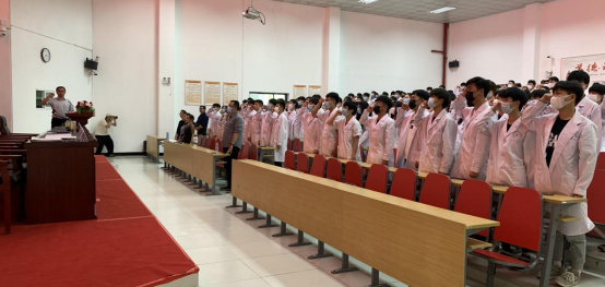 会议伊始,在陈才副院长的带领下,同学们全体起立,举起右手,郑重地重温医学生誓词。